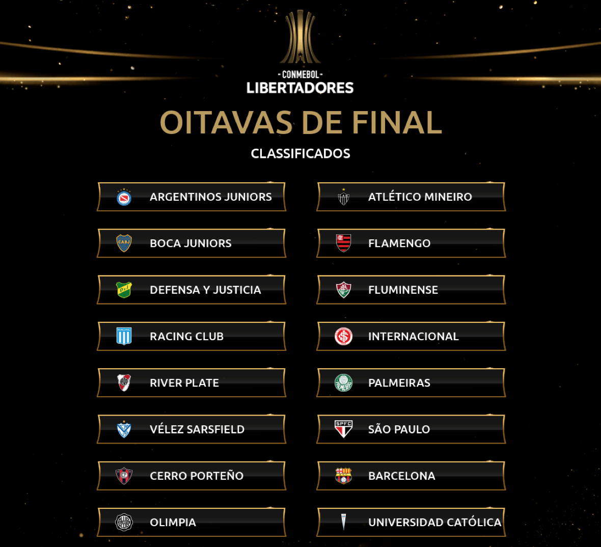Libertadores tem 16 classificados para as oitavas de final definidos